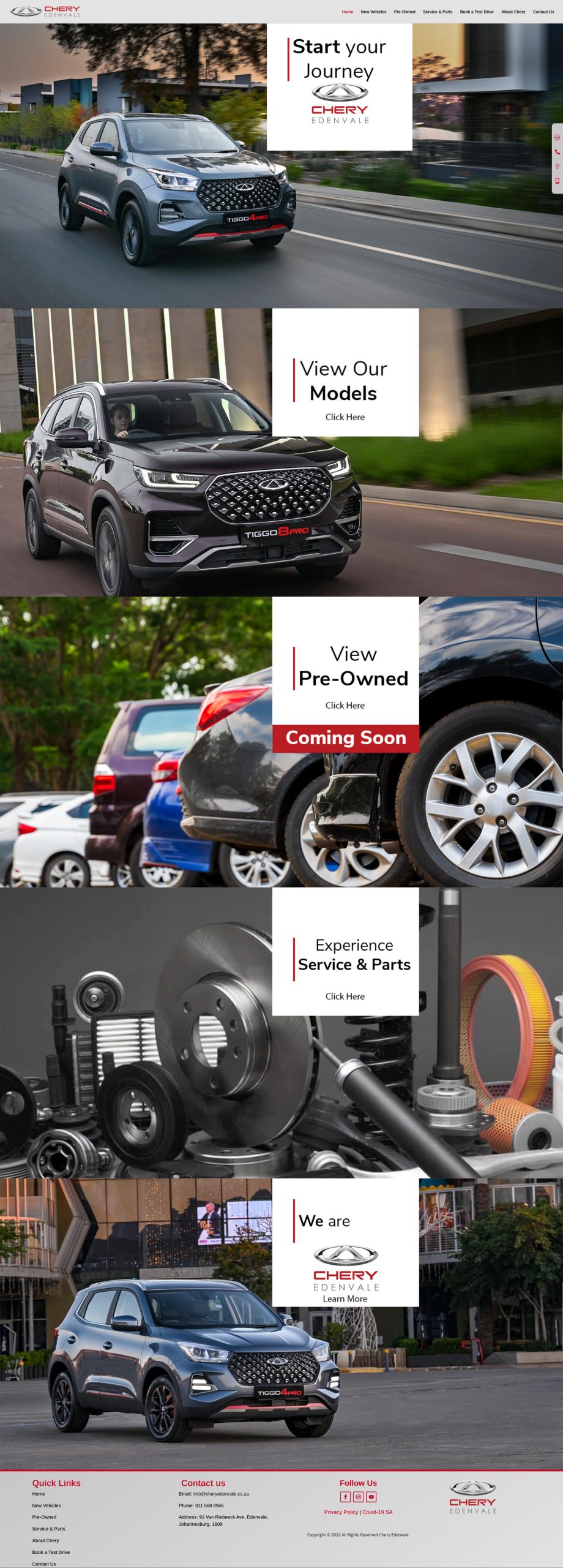 Chery Edenvale is a Chery dealership situated in Johannesburg. They sell the all-new Chery range in South Africa and offer exclusive deals such as a 7-year warranty promise. We built this website in partnership with the Quartermaster group.