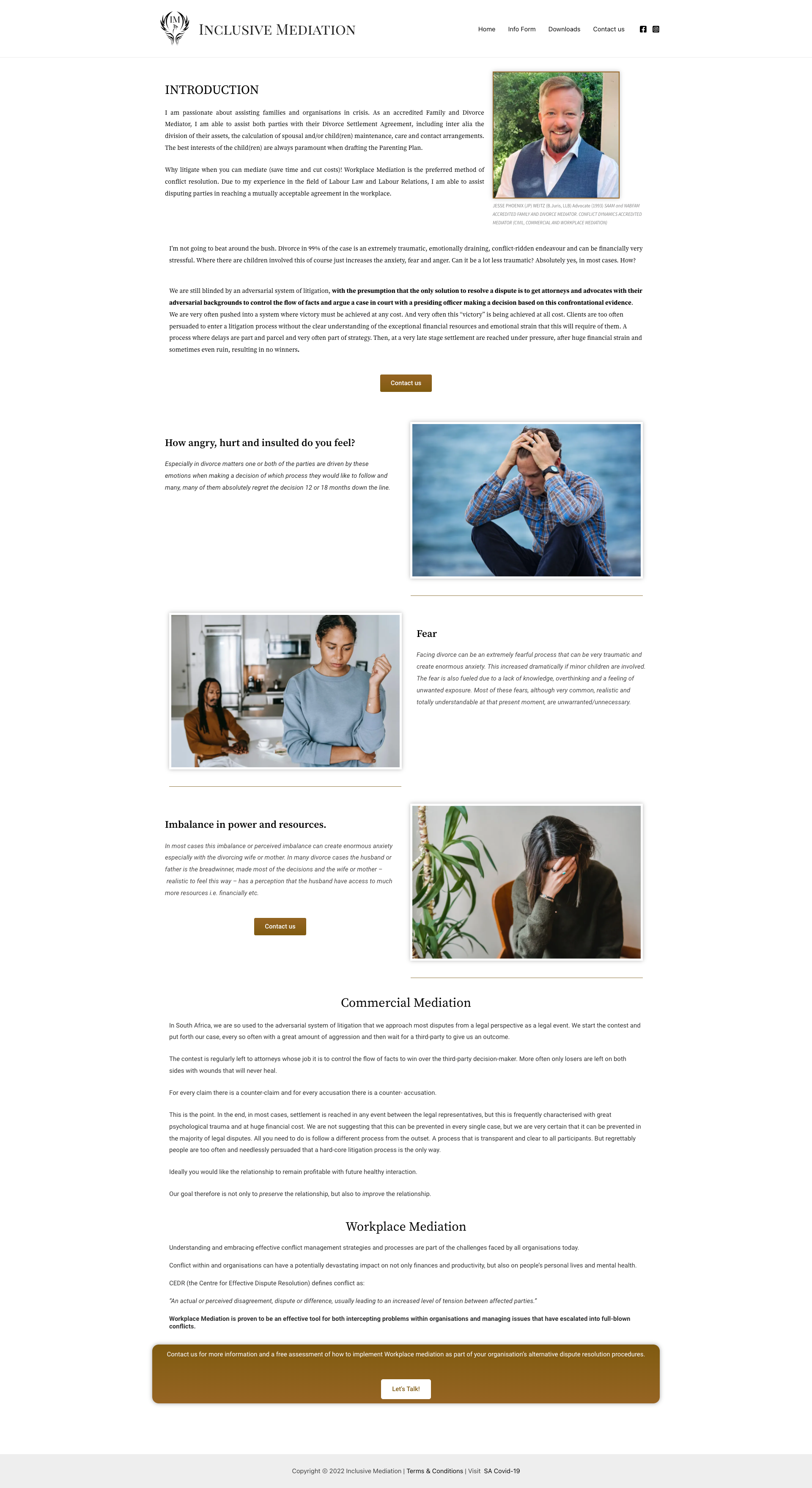 Overall a content-packed and direct-to-the-point website designed to inform its clients and connect them with Inclusive Mediation.