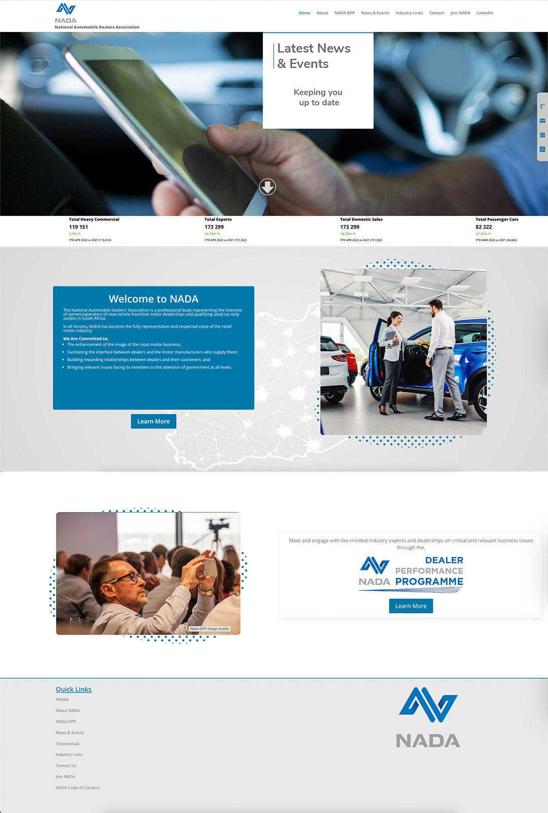 The NADA website features a scroll snap home page to improve the mobile user experience. Snapping to the next section turns a standard home page into a premium experience and creates focal points for users.